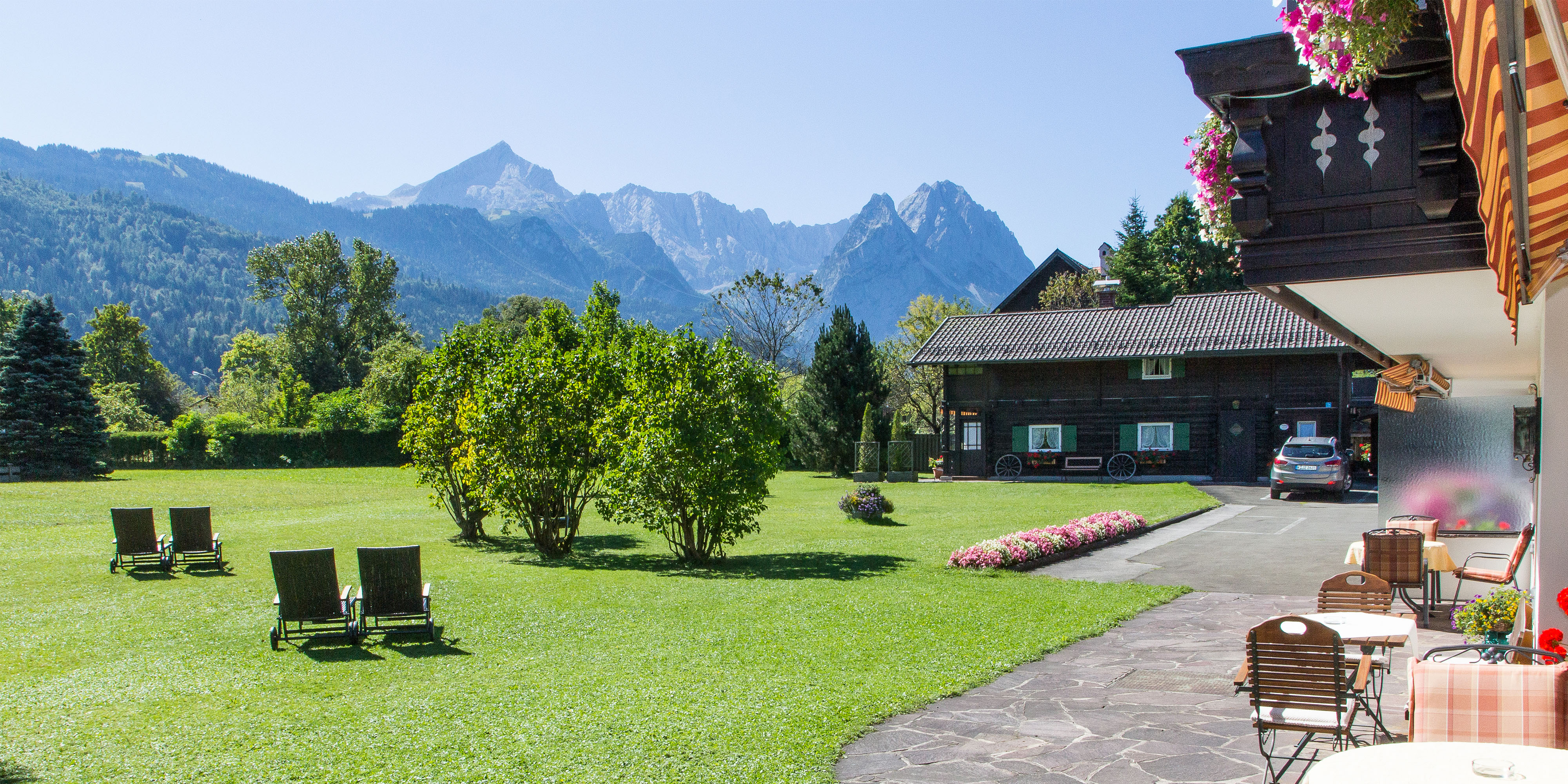 Unser familiär geführtes Gästehaus liegt in ruhiger, jedoch sehr zentraler Lage mit großem Garten, Liegewiese und Panoramaterasse direkt im Herzen von Garmisch.